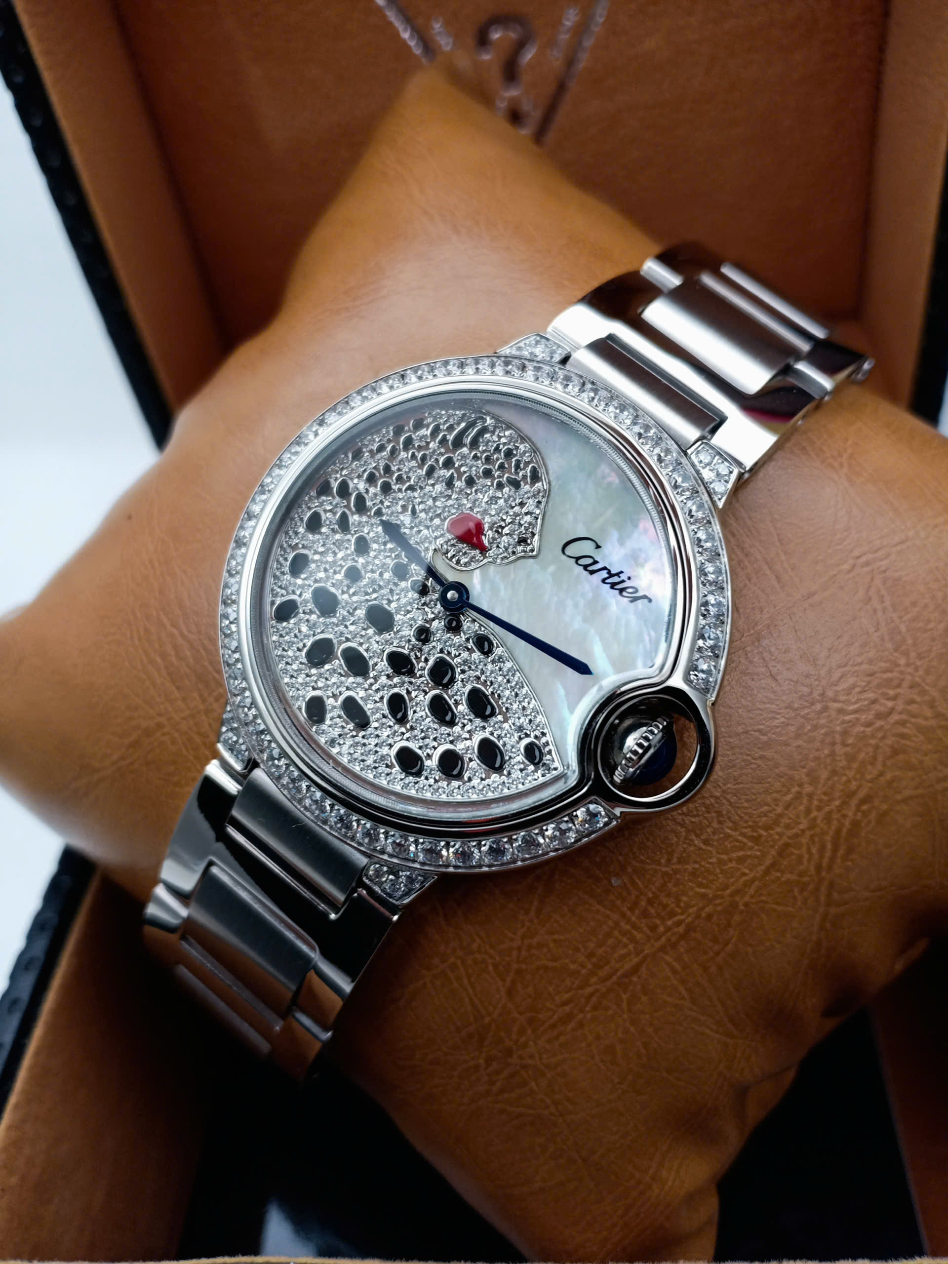 Cartier Balloon báo gấm Đẹp long lanh như trà xanh không độ Thụy Sĩ nguyên zin Dáng unisex nam nữ dùng ok Sz 36mm Mặt saphia chống trầy xước chống...