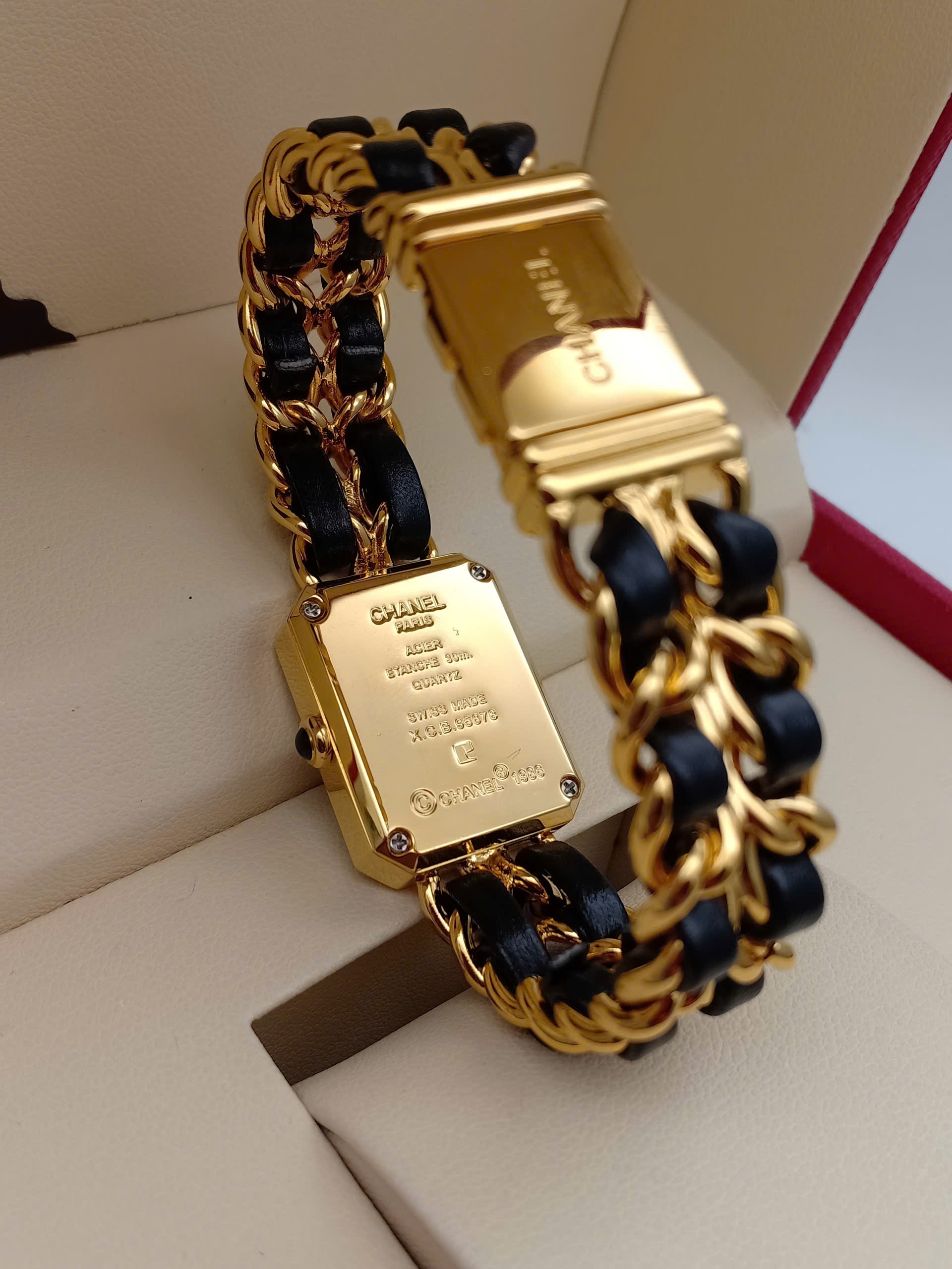 💐Chanel Première (Đáy và khóa khắc chìm mạ vàng) 💋Mặt đồng hồ hình bát giác lấy cảm hứng từ nắp chai nước hoa N°5 💋Dây đeo dạng xích đan da...