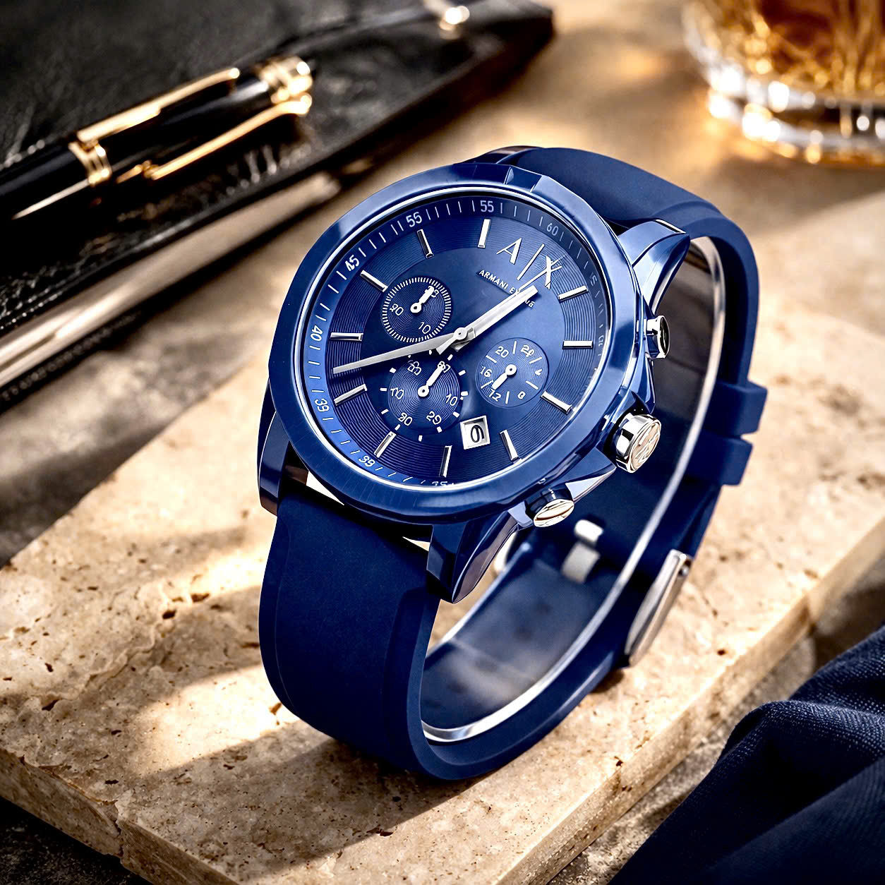 Emporio Armani - 𝐎𝐔𝐓𝐄𝐑𝐁𝐀𝐍𝐊𝐒 𝐑𝐄𝐃, 𝐁𝐋𝐔𝐄 𝐒𝐈𝐋𝐈𝐂𝐎𝐍 𝐒𝐓𝐑𝐀𝐏 𝐌𝐄𝐍'𝐒 𝐖𝐀𝐓𝐂𝐇 𝐀𝐗𝟏𝟑𝟑𝟖, 𝐀𝐗𝟏𝟑𝟐𝟕 ▫️dày 12mm - nam 44mm ▪️viền bezel bằng acrylic bền , dây silicon- chống nước:5atm. Dây da ▫️hàng...