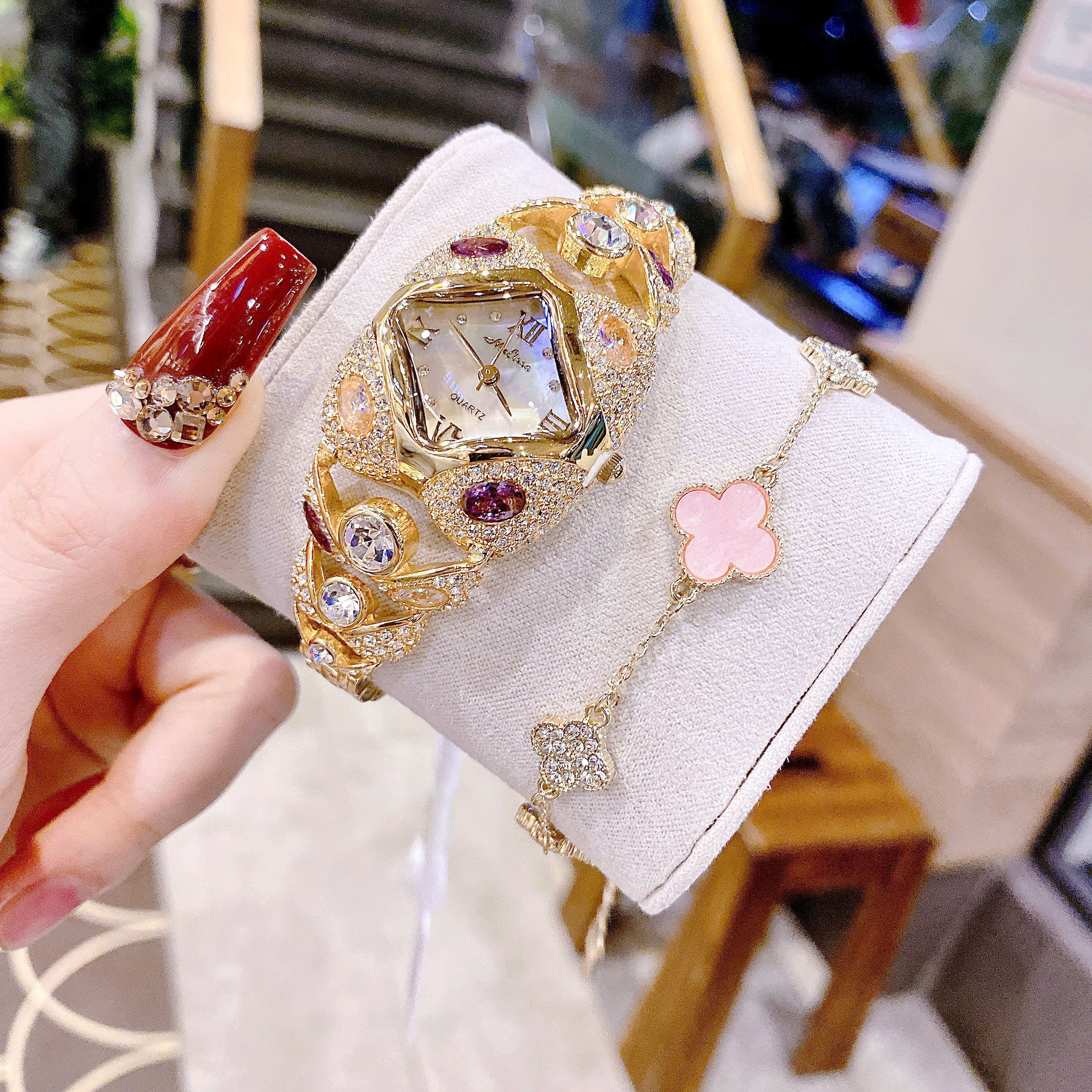 👑 Melissa siêu phẩm, đẹp lung linh luôn ạ 🌸 Chạm khắc đá cực kì tinh tế. Thiết kế như chiếc vòng tay dễ phối đồ. Full đá swarovski siêu lấp lánh ✨ #F8016