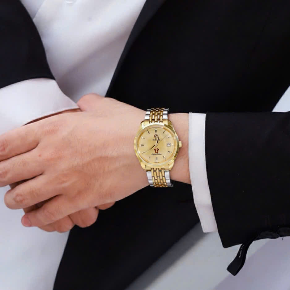 • Đồng hồ Rado Golden Horse mặt vàng ánh kim sang trọng, dây hạt gạo thép phối vàng tinh tế, thiết kế thanh lịch
