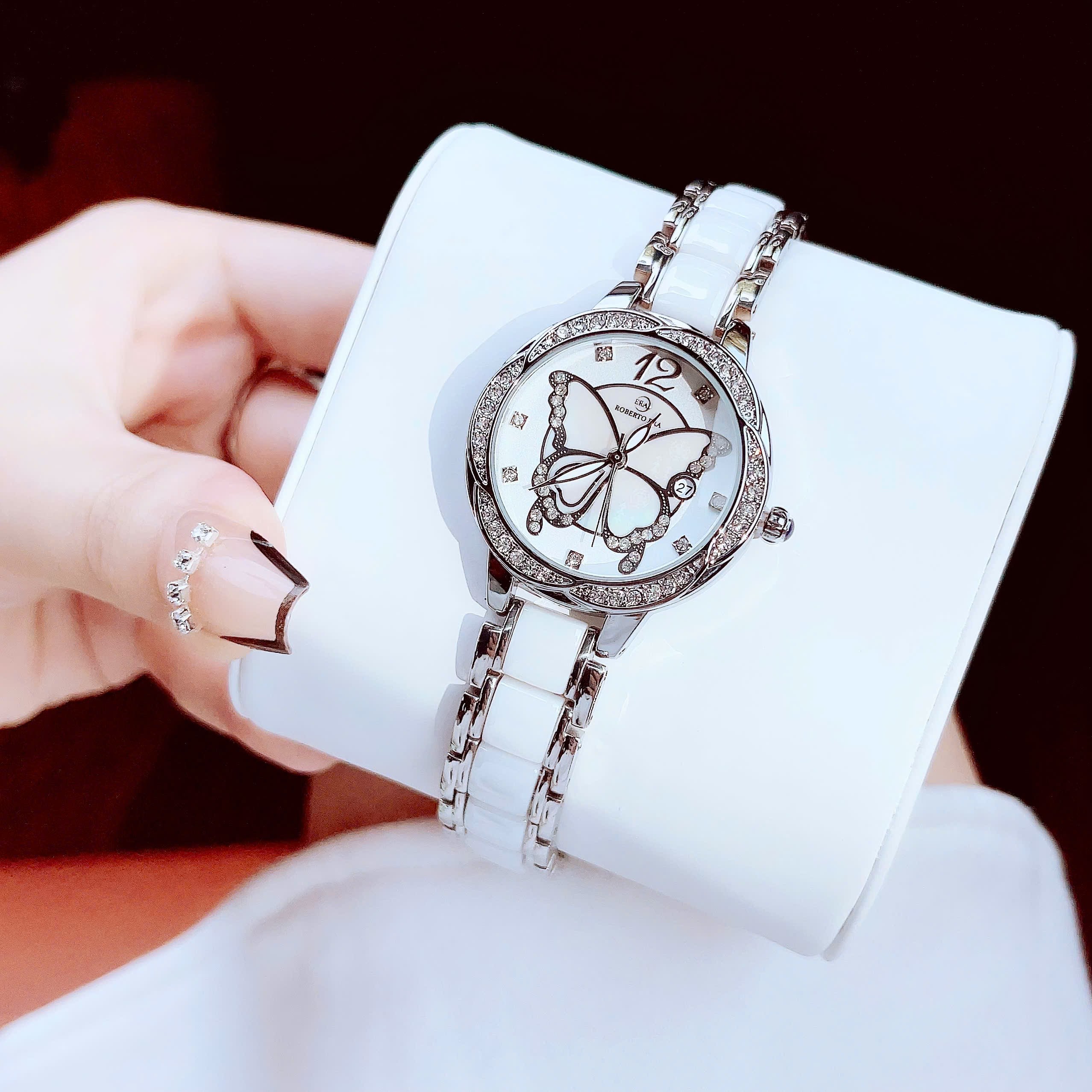 BST Ceramic Crystal đến từ nhà Rob. erto Era RE5680 🍬Case 32mm với viền đá cao cấp được thiết kế hình cánh hoa. Mặt trong thiết kế hình bướm khảm...