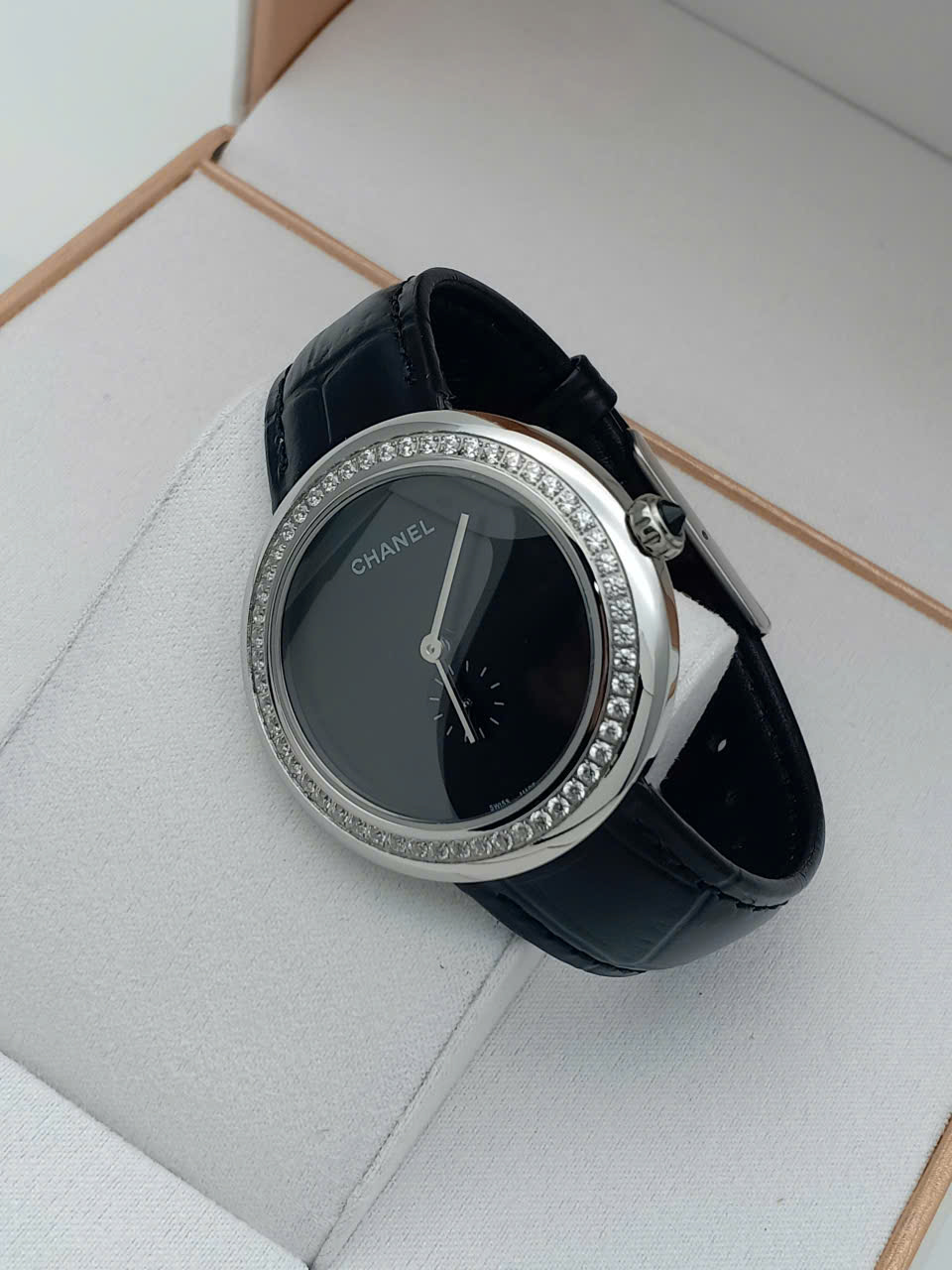 💐 CHANEL moissanite !!! Viền kim cương, máy kim giây rốn Núm gắn phale đen Swarovski - Kính: Sapphire chống trầy xước. - Chất liệu vỏ: Thép không gỉ 316L....