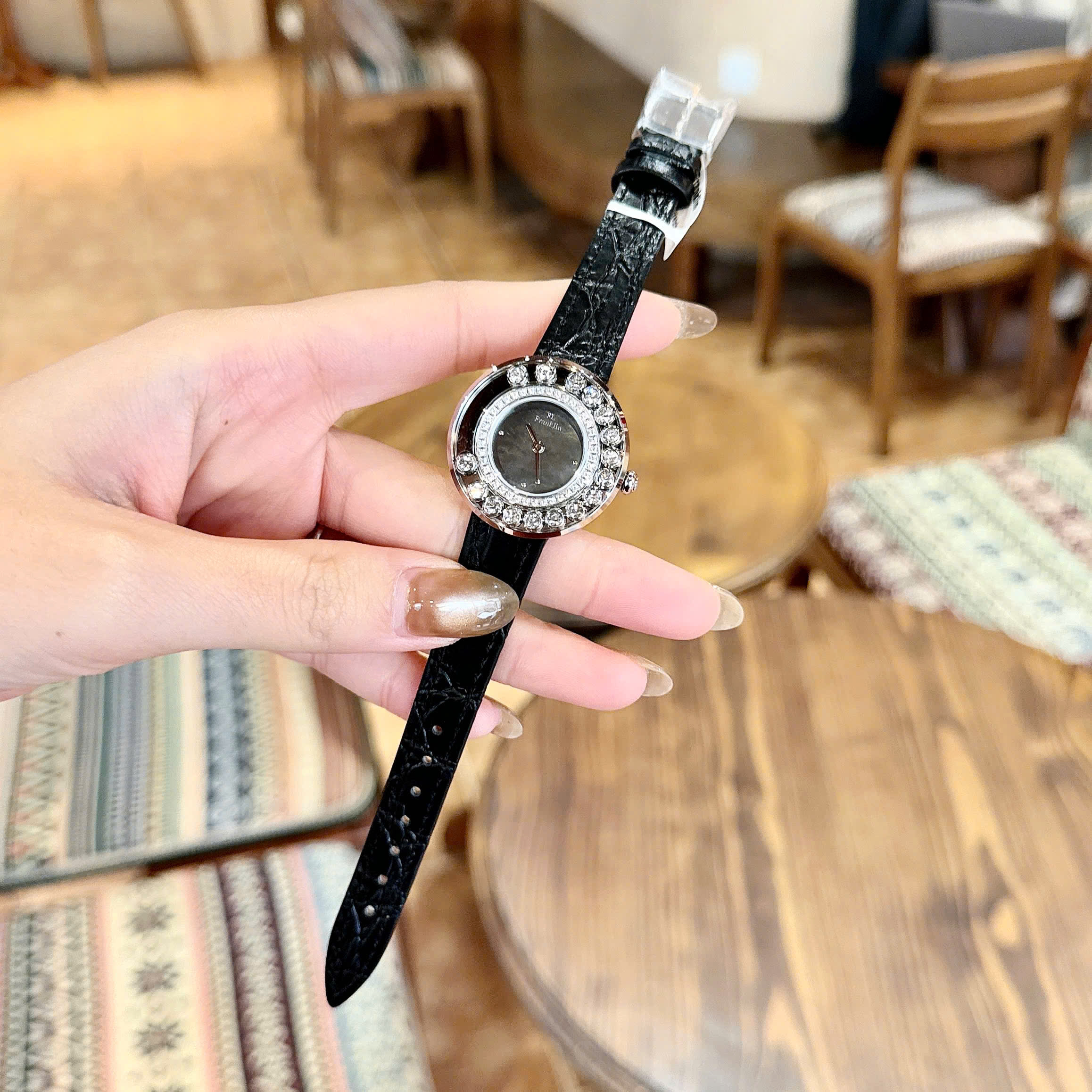 Thiết kế đá chạy xoay quanh mặt số, lấp lánh theo từng chuyển động cổ tay.